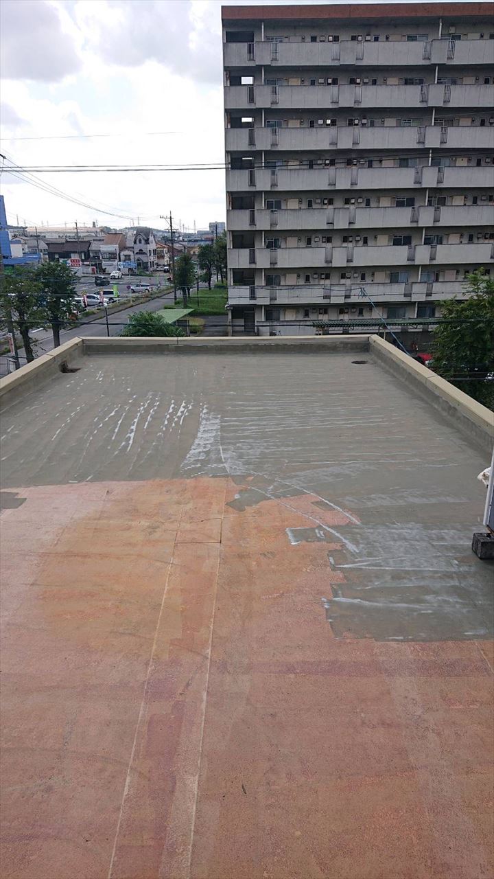 改修途中 屋上防水下塗り作業状況