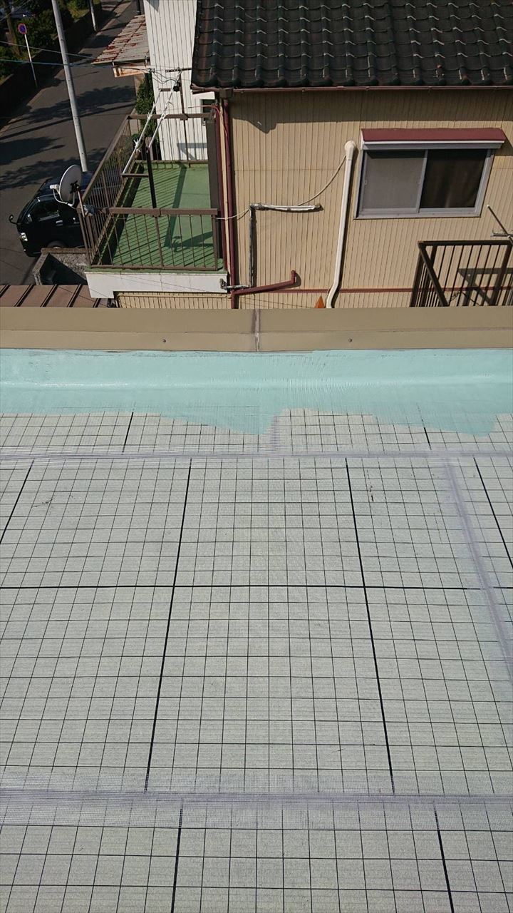 改修途中 屋上防水中塗り作業状況